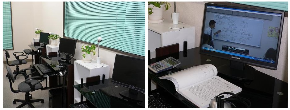 サポート講座とは、欠席された講義を学校のパソコンの画面でご受講していただく講座です。 内容は、欠席された講義そのものです。毎回すべての講義を撮影致しております。